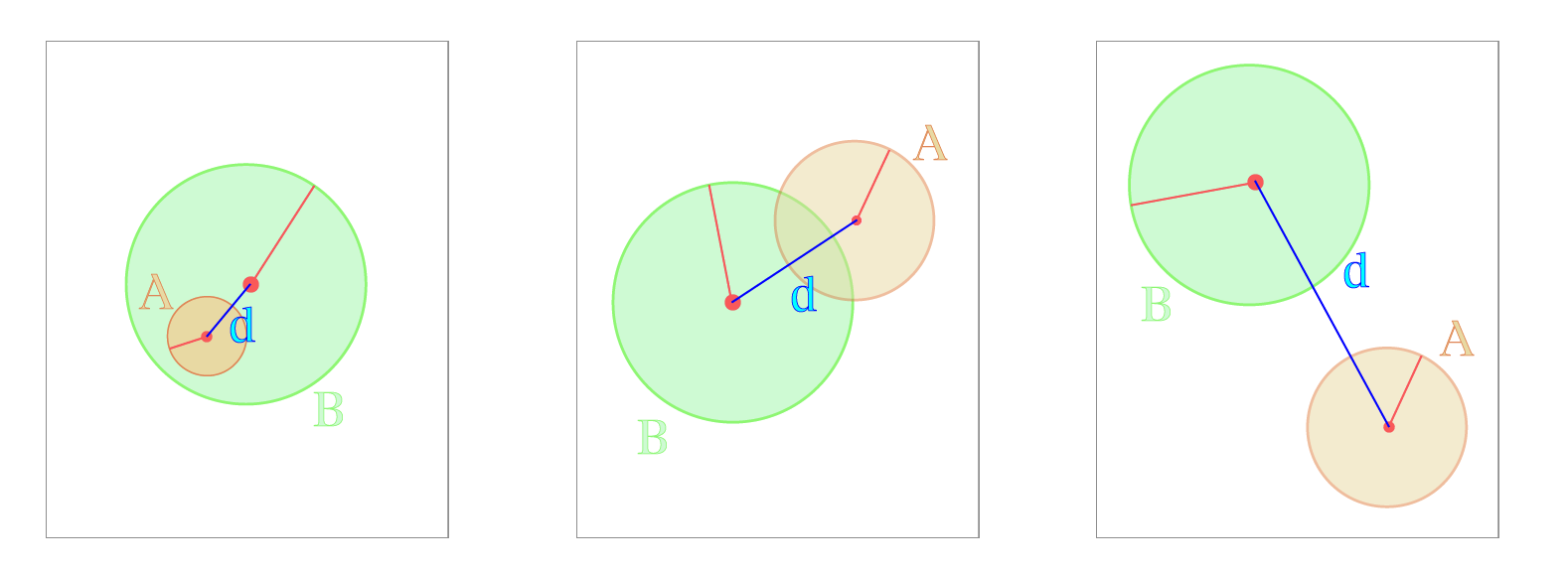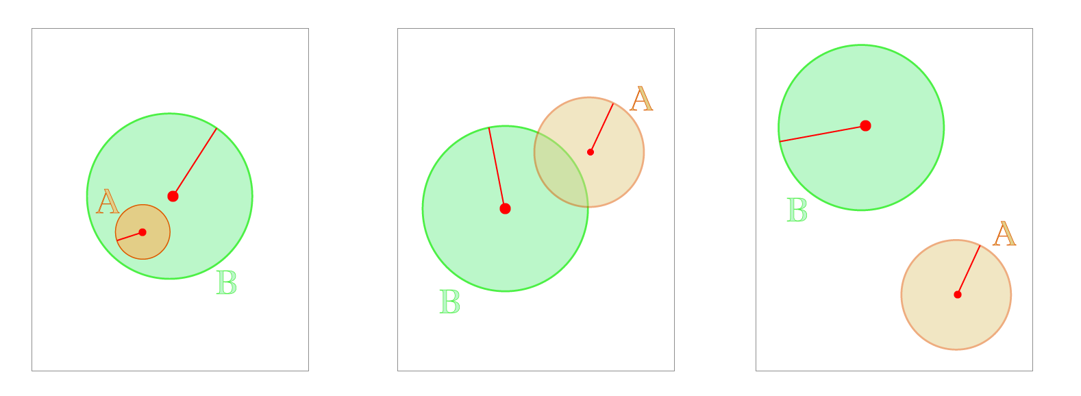 - We know when , i.e. radius of the circle A (that we want to be contained) is greater than the radius of circle B. In that case, A cannot be contained by B. Then we have .